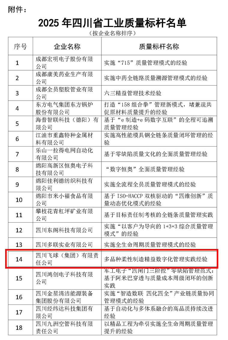 本网讯(黄志慧报道)日前,在成都金牛宾馆召开的2025年四川省企业文化与品牌建设创新发展大会上,四川飞球(集团)有限责任公司(以下简称“四川飞球”)荣获“四川省工业质量标杆”称号。这一荣誉通过对四川飞球在“多品质柔性制造精益数字化管理”方面的标杆性评价,彰显其在阀门制造领域的持续深耕、追求卓越之企业品质。