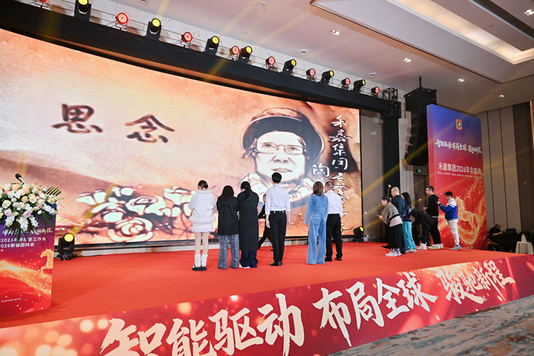 新春团拜会第一个活动依旧是《感恩的心》。作为禾嘉企业文化的传承,更是禾嘉家文化最温暖的底色。它不是一句口号,而是刻在骨子里的情怀,是企业视员工为家人、员工视企业为家园的深情联结。一路走来,我们彼此扶持、彼此成就,在困难时守望相助,在辉煌时共同喝彩,把感恩化作关怀,把包容化作力量,让每一位家人都能在这里感受到温暖、找到归属、看见希望。这份以感恩为根、以家为魂的文化,代代相传、生生不息,成为我们一路向前最坚实的精神力量。现场真挚的旋律饱含着对集团名誉董事长陶慕琼女士的感恩与怀念,集团夏主席及至亲、集团控股公司经营管理人员登台献花,向陶女士致以崇高敬意与深切追思。