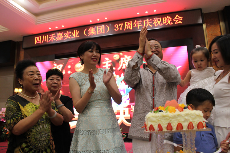 晚上七点半,晚宴开始。董事会全体成员、亲属及朋友向名誉董事长陶慕琼女士致敬,全体亲属及朋友上台献花和敬礼。禾嘉集团董事局主席夏朝嘉先生发表了晚会致辞并祝酒:“现在,让我们举起杯中酒,共庆咱们的禾嘉集团37周年华诞!祝愿禾嘉集团年年登高,宏图大展!”然后由禾嘉集团文化活动中心表演舞蹈《美人吟》。禾嘉集团37周年也恰逢夏主席生日。全体亲属及朋友上台领唱生日快乐歌,祝夏主席生日快乐。