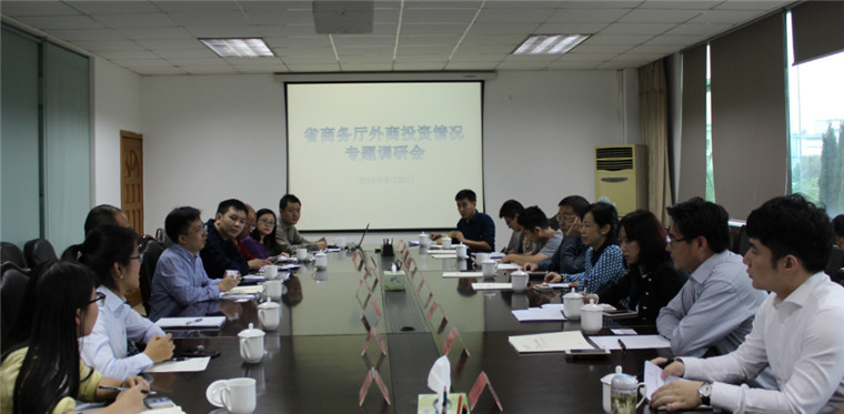 禾嘉集团考察团首先参加了由省商务厅组织的省商务厅外商投资情况专题调研会。参加本次会议的还有经开区管理委员会投资服务局副局长周礼云、省商务厅外资管理处副处长周新蓉、省社科院副院长杨钢及相关工作人员。
