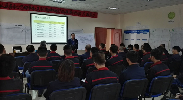 为了提升设备效率和降低维修成本做到预防性维修,公司召开了精益生产中TPM项目启动会,决定套用美国的先进管理理念(TPM)Total Productive Maintenance)全员生产维护。TPM是以提高设备综合效率为目标,以全系统的预防维修为过程,全体人员参与为基础的设备保养和维修管理体系,推行TPM的战略决策。