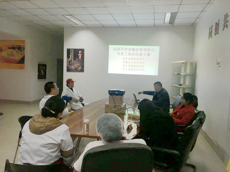 本网讯(李婷婷报道)为了给客户提供更好的服务,全面提高中央厨房生产员工综合素质及考验其工作技能,成都芊村道餐饮管理有限公司(以下简称“芊村道”) 于近日开展了“2017年第二届员工知识技能比赛”。