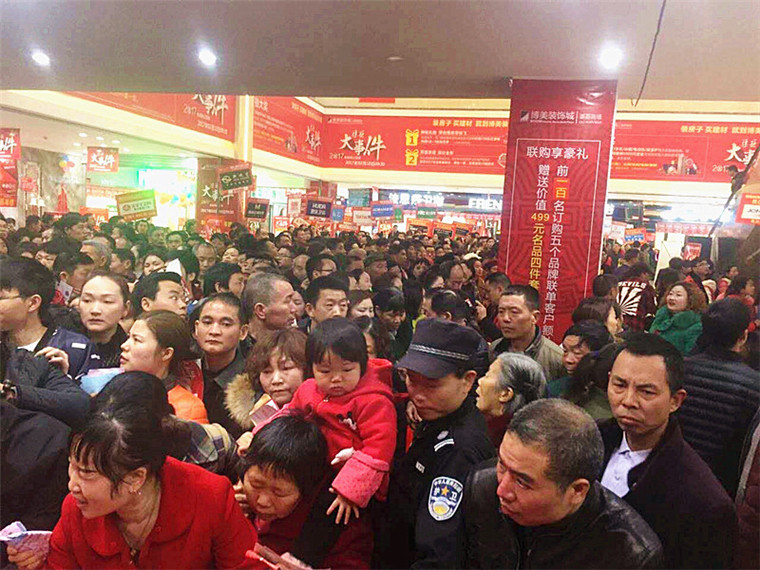 在商场活动开始前,商场门口已经排满了来参加活动的新老客户。活动现场人头攒动,在工作人员的引导下,秩序有条不紊。