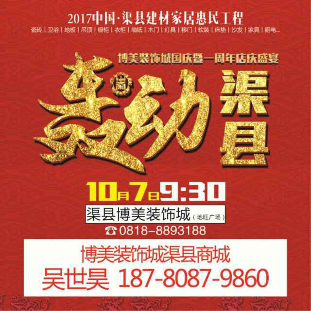 本次活动涵盖众多核心品牌,还包括装饰公司、瓷砖、地板、橱柜、衣柜、木门、卫浴、吊顶、壁纸或漆、灯、窗帘、家具、五金、板材、硅藻泥等多个建材种类。本次活动主要目地在于以此为契机持续提升博美装饰城在渠县当地的知名度,让博美品牌真正的走入渠县人的生活当中,让渠县人在自己家门口就能感受到高品质的专业卖场给予的服务和承诺,让渠县人在消费的同时构建“非博美·不购物”的理念。