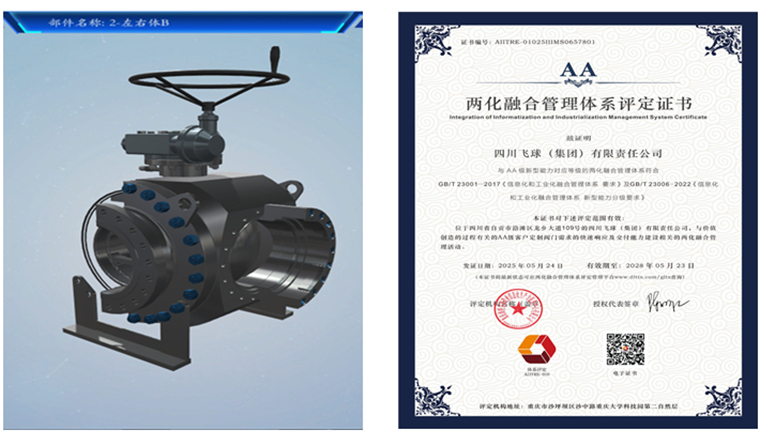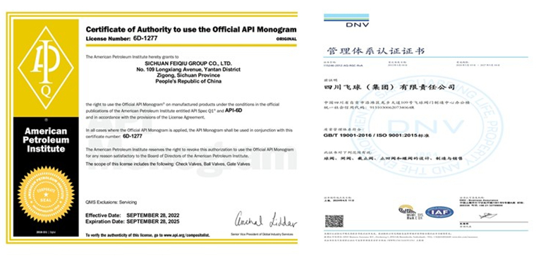 20世纪90年代初,四川飞球在行业内率先取得了美国石油学会API6D证书和挪威DNV公司IS09001证书。四川飞球生产的“飞球牌”系列阀门多次荣获“四川省名牌产品”、“中国十大阀门品牌”,“飞球牌”商标更于2012年荣获“中国驰名商标”称号。四川飞球先后获得国家级CAD应用示范企业、国家高新技术企业、国家专精特新“小巨人”企业、中国标准创新贡献二等奖励企业、两化融合管理体系评定证书(AA)、能源管理体系证书、四川省企业技术中心、四川省“专精特新”企业、四川省技术创新示范企业、四川省工业质量标杆企业、四川省机械工业50强、多次获得中石化“优秀阀门供应商”和“深度合作奖”证书、2024年“四川飞球智能低碳球阀中试平台”获自贡市科技局认定。“四川飞球创新团队”入选2025年度“盐都百千万英才计划”等多项荣誉及称号。