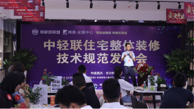 本网讯(谢碧静报道)5月31日,主题为“博美健康装、幸福在渠县”——中轻联《住宅整体装修技术规范》发布会在渠县博美•全屋中心隆重召开。出席本次发布会现场的嘉宾包括国家中轻联《住宅整体装修技术规范》标准领导组执行组长、中国绿色家居联盟、成都市绿色家居产业协会会长李洪帆,四川省装饰行业协会常务副会长江光明,博美全屋中心总经理向德坤,博美全屋中心运营总监余峻峰,渠县部分业主以及长期以来支持和帮助博美全屋中心的朋友们。本次发布会的目标是“共商行业新规范,打造行业新标准”。
