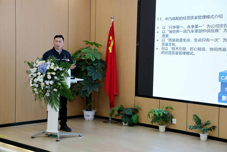 中汽成配质保部部长宋斌的发言聚焦于质量这一核心议题,深刻阐述了品质共建对于保障全球化供应链稳定与卓越的重要意义。他深入分析了双方现有质量管理体系的异同,强调在全球合作背景下,推动质量标准互认、流程对接与体系融合的紧迫性。在全球化供应链布局中,唯有将质量要求贯穿于从研发、生产到交付的全过程,并作为双方的共同语言和行动准则,才能有效抵御风险,提升整体供应链的韧性与竞争力。