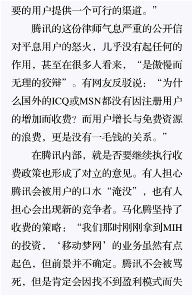 深读之后发现,其实全书真正的核心在于透过腾讯可以观察到的中国企业逻辑,其中很多基于国情而诞生的特殊能力,过去或受诟病或被追捧,而本书作者可以以更加客观的姿态对其进行分析,这无疑是一种当代创业者和企业家应当学习的姿态和能力。