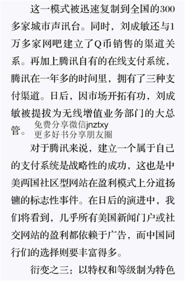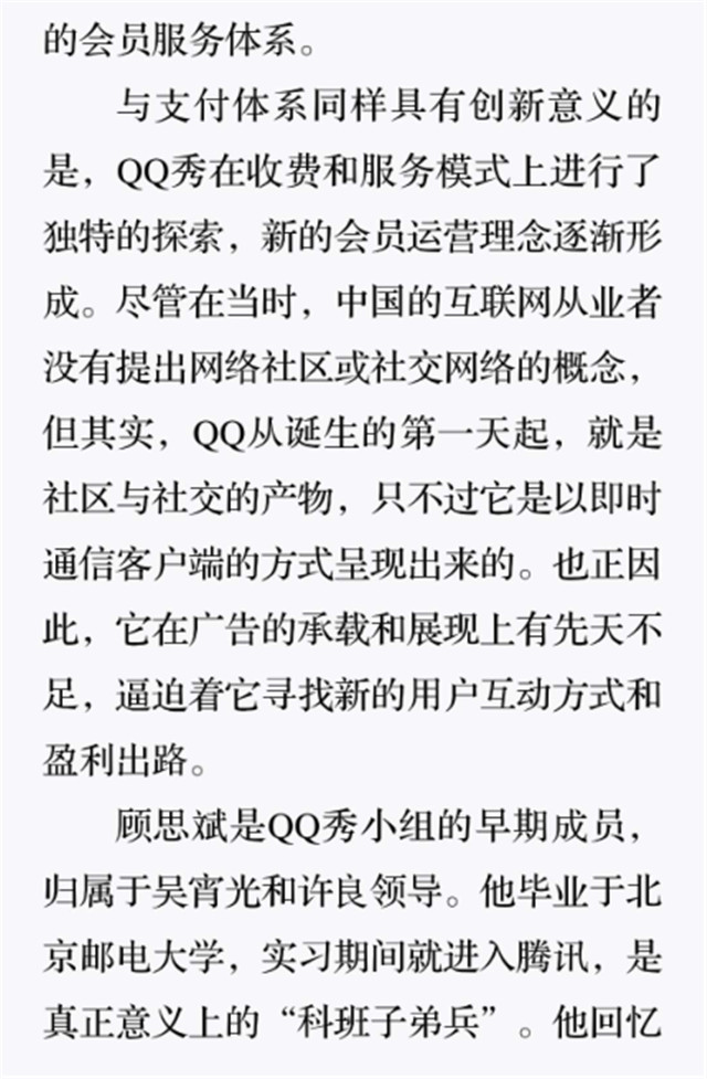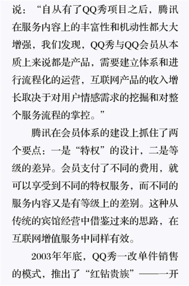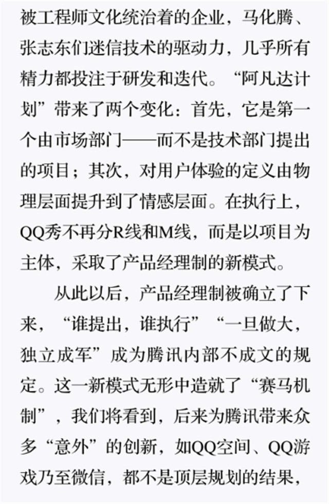 深读之后发现,其实全书真正的核心在于透过腾讯可以观察到的中国企业逻辑,其中很多基于国情而诞生的特殊能力,过去或受诟病或被追捧,而本书作者可以以更加客观的姿态对其进行分析,这无疑是一种当代创业者和企业家应当学习的姿态和能力。