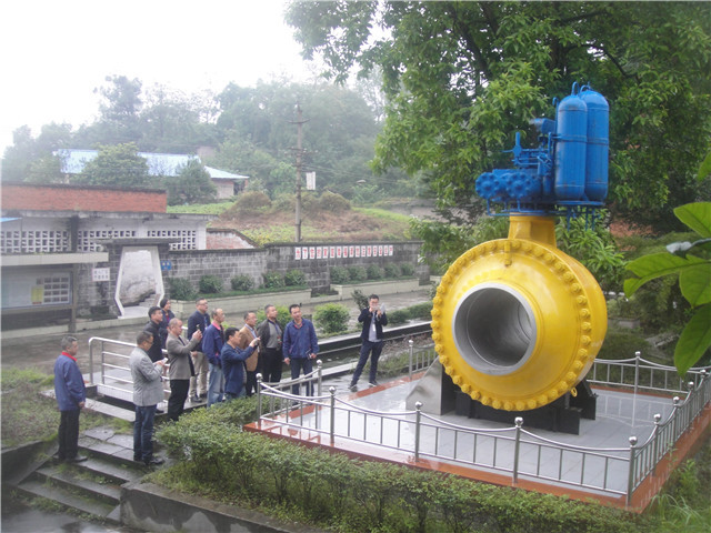 在姚总、钟总、江总等公司领导的陪同下,来宾冒着小雨首先参观了中国球阀的发源地,矗立在飞球公司花园中的中国首台铸钢气液联动紧急截断大口径球阀。