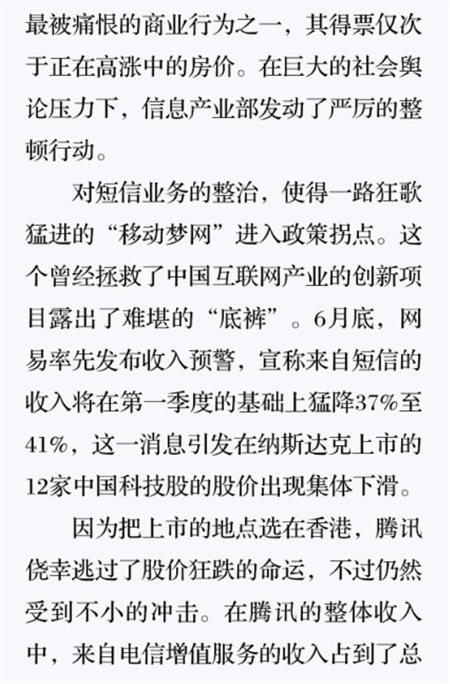 深读之后发现,其实全书真正的核心在于透过腾讯可以观察到的中国企业逻辑,其中很多基于国情而诞生的特殊能力,过去或受诟病或被追捧,而本书作者可以以更加客观的姿态对其进行分析,这无疑是一种当代创业者和企业家应当学习的姿态和能力。