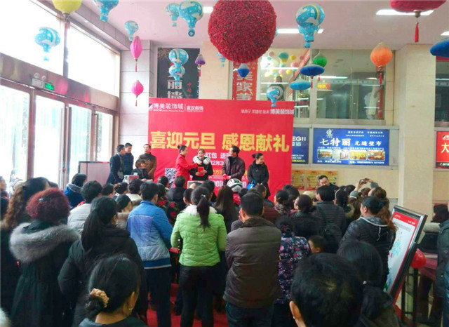本网讯(谢碧静报道)2017年12月30—31日,博美装饰城宣汉商场举行“喜迎元旦 感恩献礼”庆元旦迎新年促销活动以辞旧岁。本次活动以回馈新老客户为首要宗旨,摒弃传统的抽奖送礼品等固定环节,直接以抽红包送现金等方式,博美装饰城宣汉商场以更加人性化,更加参与性的贴心服务而深受客户的一致好评。
