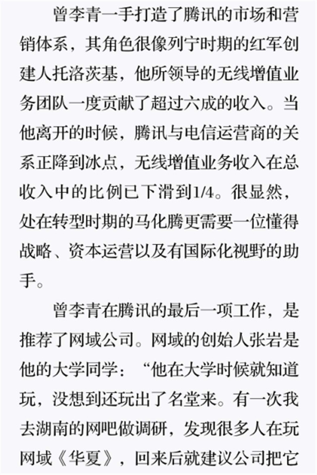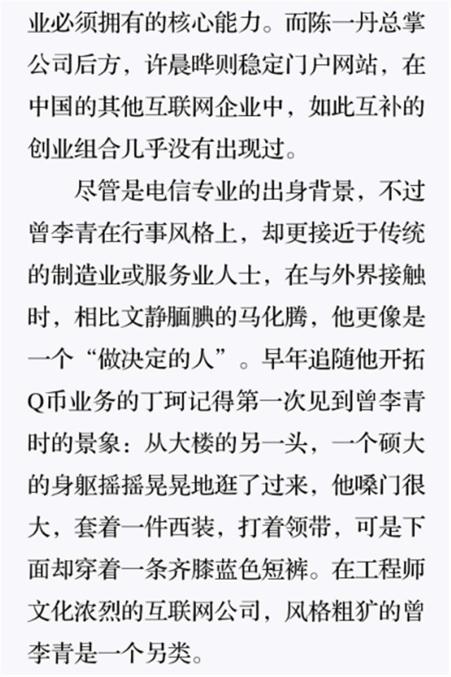 深读之后发现,其实全书真正的核心在于透过腾讯可以观察到的中国企业逻辑,其中很多基于国情而诞生的特殊能力,过去或受诟病或被追捧,而本书作者可以以更加客观的姿态对其进行分析,这无疑是一种当代创业者和企业家应当学习的姿态和能力。